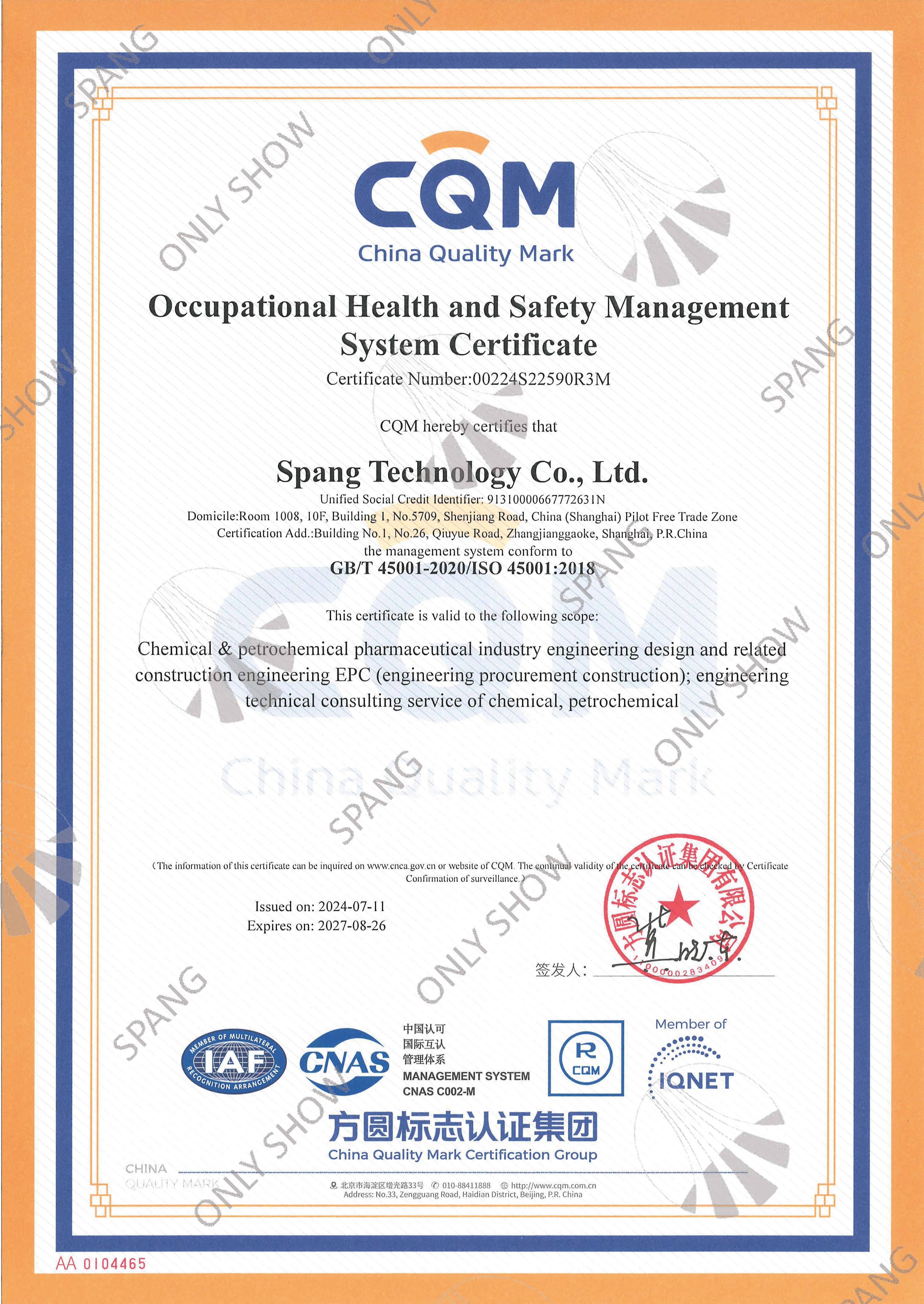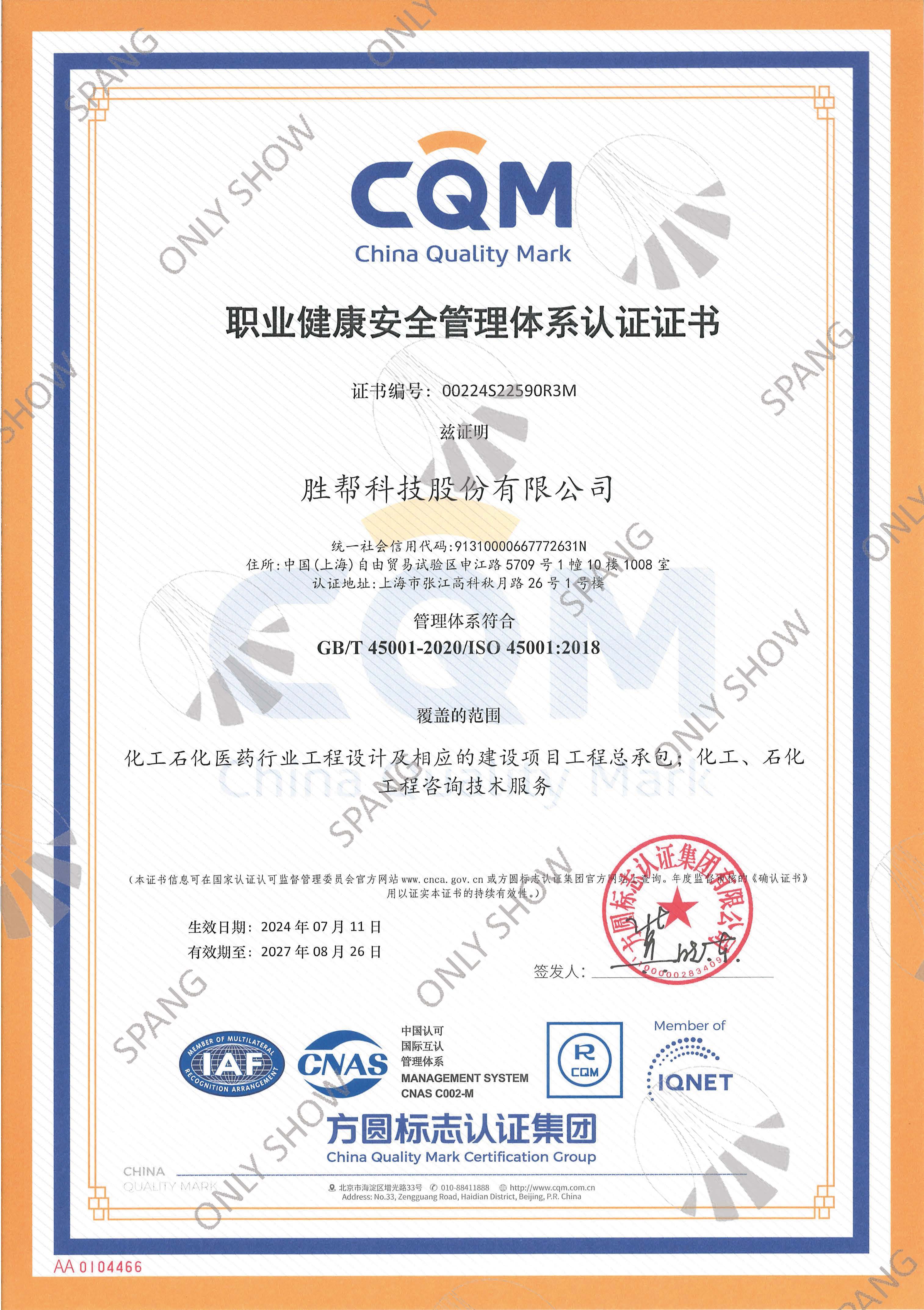 職業(yè)健康安全管理體系證書(英文版)-國際通用