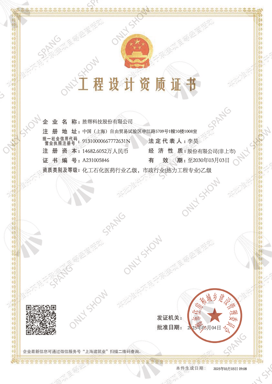 工程設(shè)計資質(zhì)證書(化工石化醫(yī)藥行業(yè)乙級,市政行業(yè)(熱力工程專業(yè))乙級)