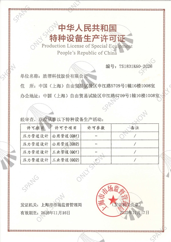公司順利取得壓力管道設(shè)計(jì)許可證書