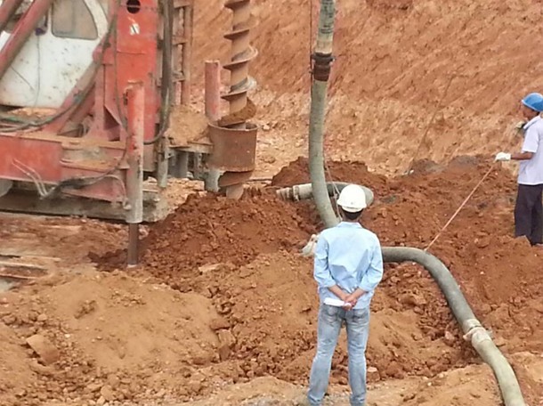 由于連續(xù)的雷雨天氣,場地泥濘不堪,施工人員根本無法進(jìn)入場地,導(dǎo)致焦炭塔和壓縮機(jī)廠房CFG樁基礎(chǔ)的開挖和打樁進(jìn)度滯后。期間又值東鑫垣整個廠區(qū)停電,打樁機(jī)維修,供電電壓不足,電纜線負(fù)荷不夠,地泵故障等等一系列突發(fā)情況。2013年8月4日下午,上海勝幫東鑫垣項目部人員帶領(lǐng)陜西建工機(jī)械公司披荊斬棘,排除萬難,終于在13點34分時成功打下第一根CFG樁,經(jīng)現(xiàn)場測量符合施工標(biāo)高…