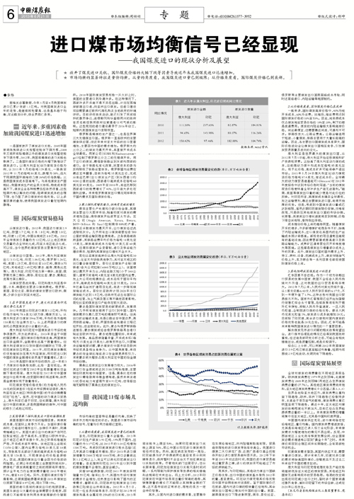 中國(guó)煤炭報(bào):2013年6月21日 第6版 進(jìn)口煤市場(chǎng)均衡信號(hào)已經(jīng)顯現(xiàn)——我國(guó)煤炭進(jìn)口的現(xiàn)狀分析及展望 集團(tuán)公司董事長(zhǎng)、黨委書記 華煒★ 放開了煤炭進(jìn)口關(guān)稅、國(guó)際煤炭?jī)r(jià)格的大幅下跌等因素導(dǎo)致近年來我國(guó)煤炭進(jìn)口迅速增加?!?市場(chǎng)均衡的顯著特征是量?jī)r(jià)均衡。從量的角度看,我國(guó)煤炭進(jìn)口量已到極限;從價(jià)格角度看,國(guó)際煤炭?jī)r(jià)格已到底部。據(jù)海關(guān)總署數(shù)…