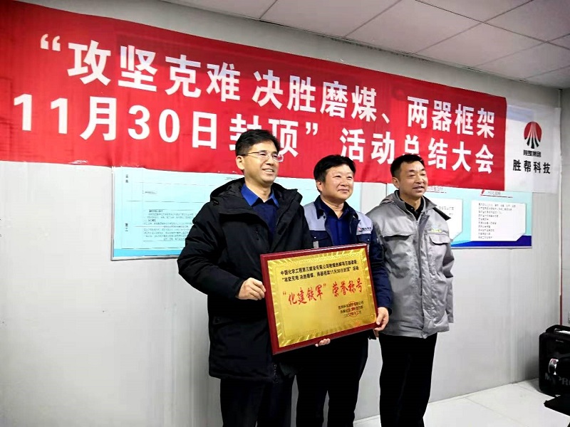 2020年12月1日,在勝幫科技熱解啟動工程項(xiàng)目部會議室隆重舉行榆林化學(xué)1500萬噸/年煤炭分質(zhì)清潔高效轉(zhuǎn)化示范項(xiàng)目熱解啟動工程“攻堅(jiān)克難 決勝磨煤、兩器框架11月30日封頂”活動總結(jié)表彰大會。榆林化學(xué)公司各職能部門經(jīng)理、120項(xiàng)目項(xiàng)目經(jīng)理劉振虎、勝幫科技股份有限公司董事長朱保平、北京華夏監(jiān)理公司總監(jiān)理工程師祝衛(wèi)東、中化三建副總經(jīng)理蔡向陽、中化三建分公司經(jīng)理歐陽寧等出席本次會議。