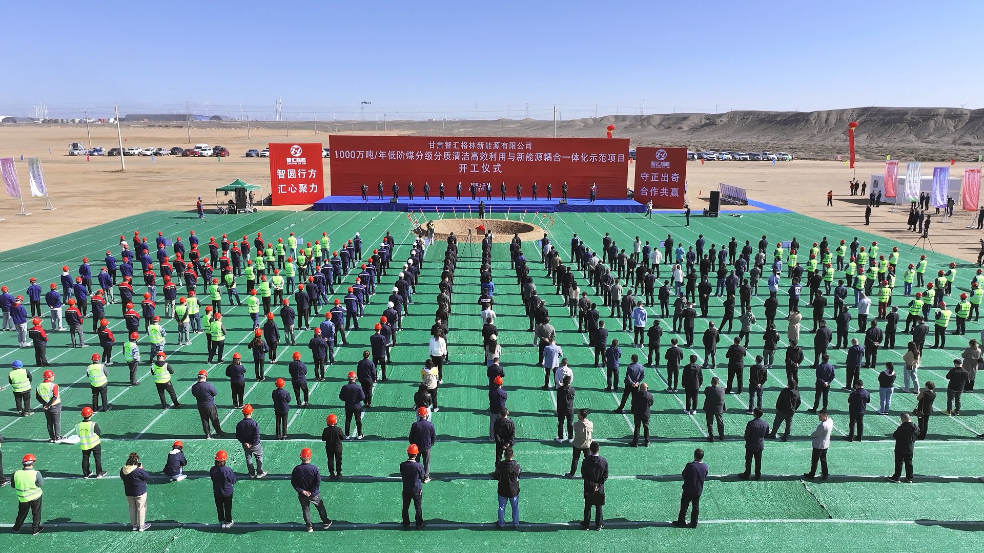 9月25日上午,甘肅智匯格林新能源有限公司1000萬噸/年低階煤分級分質(zhì)清潔高效利用與新能源耦合一體化示范項目開工儀式舉行。酒泉市政府副市長石峰及市直部門,瓜州縣委、縣政府、人大、政協(xié)主要領(lǐng)導(dǎo),業(yè)主甘肅智匯格林新能源公司、總承包單位勝幫科技公司負(fù)責(zé)人,項目施工人員等共500余人參加開工儀式。