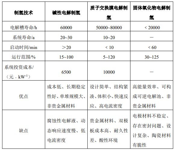 根據(jù)電解液的不同,當前被認為可大規(guī)模推廣的電解制氫技術主要分為3種:堿性電解、質子交換膜電解和固體氧化物電解。表2.4-1是三種水電解制氫技術對比,表2.4-2為電解水和其它工業(yè)制氫技術對比。
