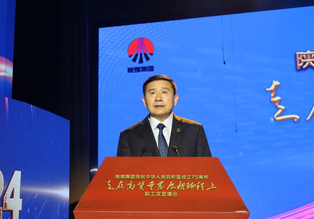 張文琪在致辭中代表陜煤14萬(wàn)干部職工,向偉大祖國(guó)送上了“繁榮富強(qiáng)、國(guó)泰民安”的衷心祝福。他指出,今年既是新中國(guó)成立75周年,也是集團(tuán)成立20周年。20年來(lái),集團(tuán)上下立足發(fā)展第一要?jiǎng)?wù),資產(chǎn)總額、營(yíng)收利潤(rùn)等核心指標(biāo)取得重大突破,綜合實(shí)力邁上新臺(tái)階;20年來(lái),集團(tuán)上下緊跟產(chǎn)業(yè)革命大勢(shì),走出了一條集群化、高端化、智能化的綠色耦合發(fā)展之路,轉(zhuǎn)型升級(jí)實(shí)現(xiàn)新跨越;20年來(lái),集團(tuán)公司積極履行國(guó)企使命擔(dān)當(dāng),堅(jiān)決扛起能源保供責(zé)任,繪就和諧共享新畫(huà)卷;20年來(lái),集團(tuán)上下始終堅(jiān)持黨的全面領(lǐng)導(dǎo),企業(yè)治理展現(xiàn)新風(fēng)貌。他強(qiáng)調(diào),今天的陜煤,風(fēng)清氣正、團(tuán)結(jié)奮進(jìn),凝聚起了推動(dòng)高質(zhì)量發(fā)展的磅礴力量。并號(hào)召全體干部職工堅(jiān)持以習(xí)近平新時(shí)代中國(guó)特色社會(huì)主義思想為指導(dǎo),堅(jiān)決落實(shí)省委、省政府決策部署,以“四種經(jīng)營(yíng)理念”為引領(lǐng),以“八個(gè)聚焦”為實(shí)踐路徑,以“固根基、揚(yáng)優(yōu)勢(shì)、補(bǔ)短板、強(qiáng)弱項(xiàng)”重點(diǎn)工作為突破,一體推進(jìn)傳統(tǒng)產(chǎn)業(yè)升級(jí)、新興產(chǎn)業(yè)發(fā)展、未來(lái)產(chǎn)業(yè)培育,不斷增強(qiáng)企業(yè)核心功能,提升企業(yè)核心競(jìng)爭(zhēng)力,以?xún)?yōu)異的成績(jī)?yōu)樾轮袊?guó)成立75周年獻(xiàn)禮,為譜寫(xiě)中國(guó)式現(xiàn)代化建設(shè)的陜西新篇章貢獻(xiàn)陜煤更大的力量。