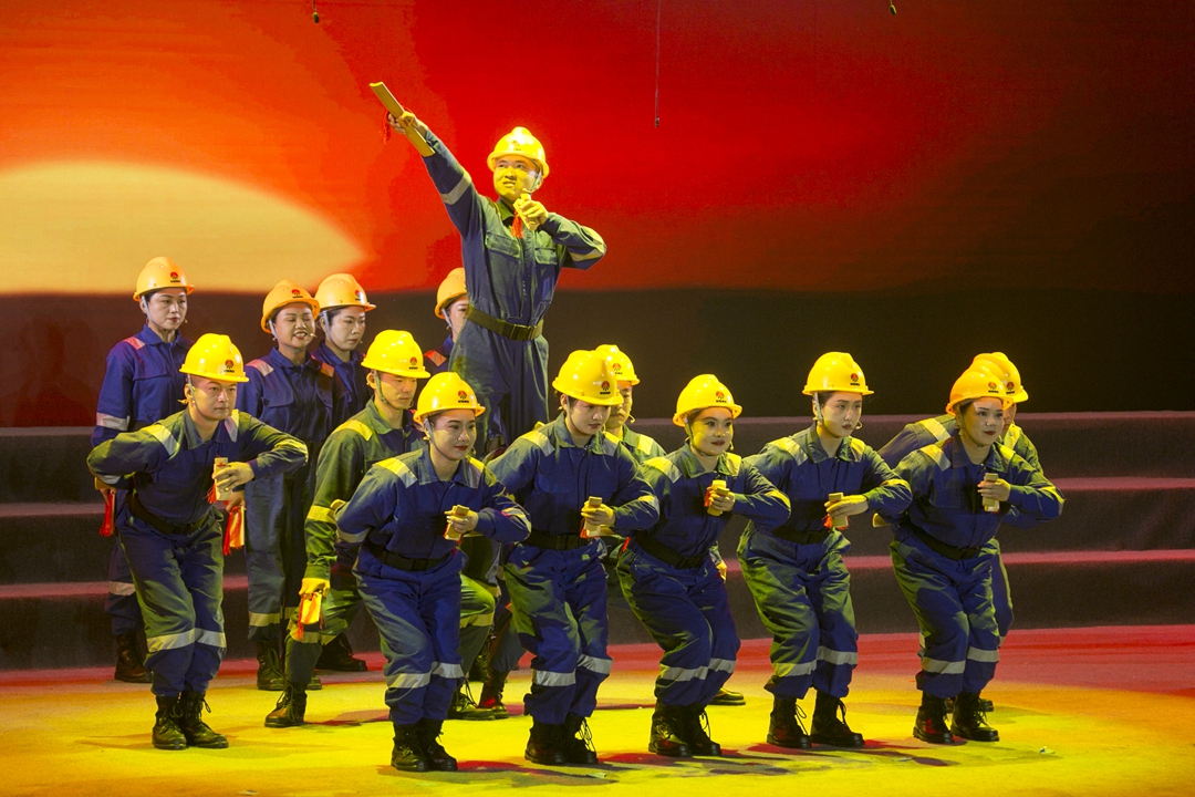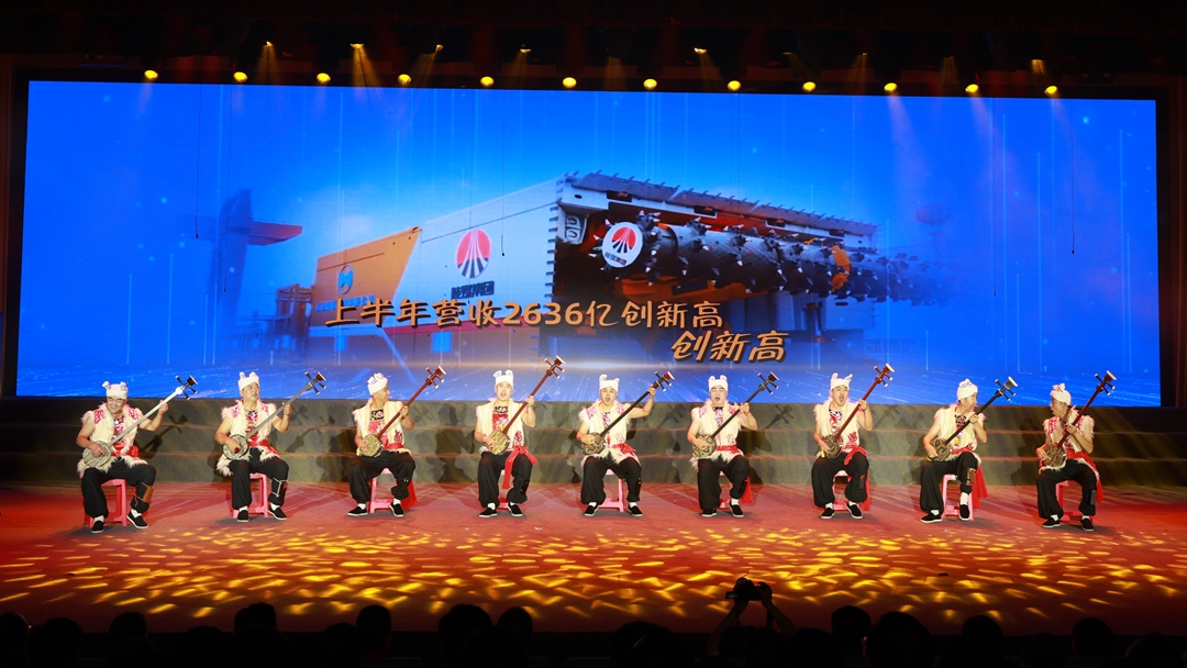 文藝匯演在播放的集團(tuán)《奮進(jìn)20年》宣傳片中拉開(kāi)帷幕。從搶抓發(fā)展機(jī)遇,有序推進(jìn)大型煤炭基地建設(shè),到瞄準(zhǔn)現(xiàn)代煤化工領(lǐng)域制高點(diǎn),加速打造高端煤化工產(chǎn)業(yè)集群;從大力發(fā)展煤電及新能源發(fā)電項(xiàng)目,提供“能源+服務(wù)+金融”綜合能源解決方案的一站式用能服務(wù),到主動(dòng)承擔(dān)振興陜西鋼鐵產(chǎn)業(yè)的歷史重任,推進(jìn)鋼鐵深加工產(chǎn)業(yè)鏈完善提升、產(chǎn)品結(jié)構(gòu)轉(zhuǎn)型升級(jí)和鎂鐵釩鈦耦合發(fā)展;從打造具有礦建特色的集研發(fā)、設(shè)計(jì)、施工等為一體的大型特級(jí)綜合建筑施工企業(yè),到做強(qiáng)裝備制造業(yè),高端采煤機(jī)技術(shù)始終保持國(guó)際領(lǐng)先水平……背景屏幕上,奮進(jìn)者的步伐堅(jiān)定、足音鏗鏘,一幕幕畫(huà)面閃耀著20載獨(dú)屬于陜煤人敢為人先、使命善成的榮光。