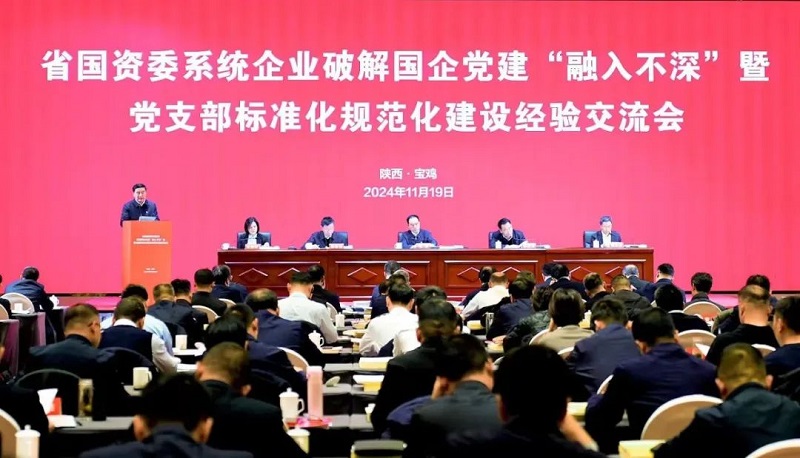 11月19日,陜西省國資委系統(tǒng)企業(yè)破解國企黨建“融入不深”暨黨支部標準化規(guī)范化建設經(jīng)驗交流會在寶雞召開。省國資委黨委書記任國出席會議并講話。省國資委黨委委員、副主任楊愛民主持會議,并通報省屬企業(yè)黨委前置研究情況穿透式評估結果。省國資委黨委委員、駐委紀檢組組長徐永兵通報省國資委系統(tǒng)清廉國企建設示范先行單位檢查驗收結果。省國有企業(yè)監(jiān)事會主席王春玲通報省國資委系統(tǒng)企業(yè)標準化規(guī)范化建設示范黨支部檢查驗收結果。