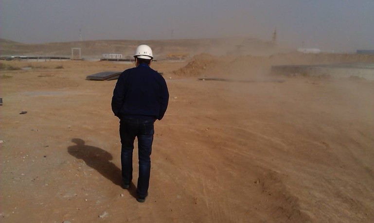 早上來(lái)到工地時(shí),正好遇到每天準(zhǔn)時(shí)到來(lái)的沙塵暴,錢經(jīng)理不畏-6℃的嚴(yán)寒,風(fēng)沙中行走。