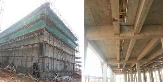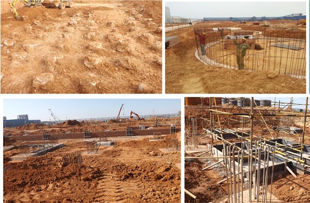 加氫裝置區(qū)管廊基礎(chǔ)、設(shè)備基礎(chǔ)也相繼完成;壓縮機廠房進行樁間土和破樁頭施工。裝置控制室、配電所施工也在緊鑼密鼓的進行著,中控室已經(jīng)完成頂板澆注;配電室進行二層板鋼筋施工。
