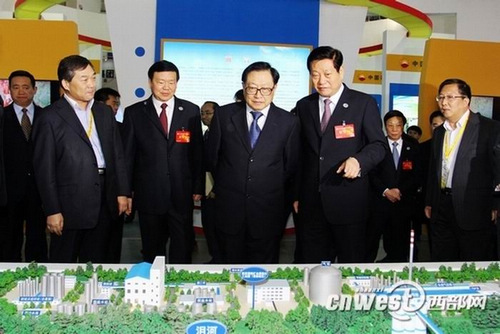 十一屆全國(guó)人大常委會(huì)副委員長(zhǎng)華建敏等中央部委領(lǐng)導(dǎo)在陜西省委書(shū)記趙正永、省長(zhǎng)婁勤儉,陜煤化集團(tuán)總經(jīng)理?xiàng)钫涨?、黨委副書(shū)記馬富元的陪同下視察了陜煤化集團(tuán)的展區(qū)。在集團(tuán)公司模型展示區(qū)前,聽(tīng)取了黃陵礦業(yè)集團(tuán)總經(jīng)理李孝波對(duì)黃陵礦區(qū)循環(huán)經(jīng)濟(jì)發(fā)展的情況介紹,對(duì)陜煤化集團(tuán)的發(fā)展給予了肯定。華建敏等領(lǐng)導(dǎo)一行在陜煤化集團(tuán)展區(qū)停留時(shí)間最長(zhǎng),使陜煤化集團(tuán)展區(qū)成為媒體和中外企業(yè)關(guān)注本屆西洽會(huì)場(chǎng)館展覽的焦點(diǎn),提高了陜煤化集團(tuán)的知名度。