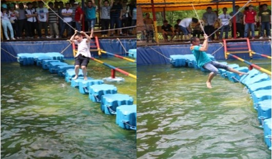 清晨8點(diǎn),車輪徐徐轉(zhuǎn)動。經(jīng)過3個半小時的車程,順利到達(dá)青山湖風(fēng)景區(qū)。在湖畔用完午餐,大家在湖邊碼頭等待游船。游客越來越多,人聲鼎沸。大家排著長隊(duì),魚貫而入,登上游船,前往水上森林。水上森林有大闖關(guān),大家玩得不亦樂乎,滿身大汗。最刺激的要數(shù)“水上大闖關(guān)”,挑戰(zhàn)者卷起褲腿,躍躍欲試。由于時間限制,我們只好依依不舍離開了水上森林。分成四組,乘坐小船返回碼頭。小船四面通透,湖風(fēng)掠過,甚是清涼。