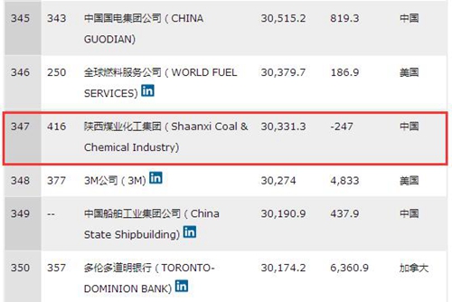 7月20日晚,美國《財富》雜志“2016年財富世界500強榜單”公布,陜西煤業(yè)化工集團繼上年首次躋身后,今年再次憑借1906億元人民幣(303.31億美元)的總收入,位列榜單第347位,較上年前進69名。