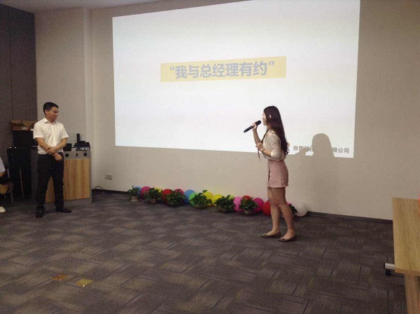 隨著“我與總經(jīng)理有約”創(chuàng)意游戲的開始,歡迎會被推向高潮。一名新入職大學生獲得了和總經(jīng)理面對面交流暢談未來職業(yè)規(guī)劃的機會。