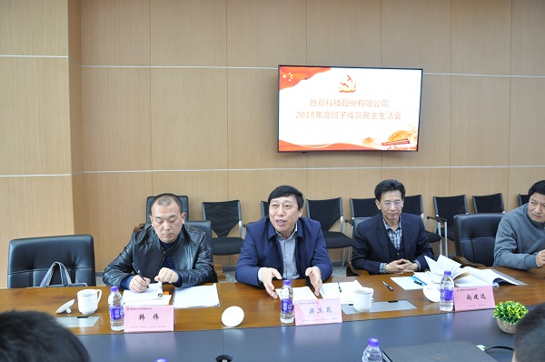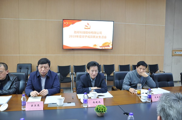 3月8日下午,勝幫科技召開領(lǐng)導(dǎo)班子2018年度民主生活會(huì)。集團(tuán)公司黨委委員、副總經(jīng)理尚建選,化工集團(tuán)董事長(zhǎng)、總經(jīng)理梁玉昆,集團(tuán)公司講政治專題教育第二督導(dǎo)組組長(zhǎng)黨亞明及督導(dǎo)組成員出席指導(dǎo)會(huì)議。會(huì)議由勝幫科技黨委書記、董事長(zhǎng)朱保平主持,公司領(lǐng)導(dǎo)班子成員參加會(huì)議。
