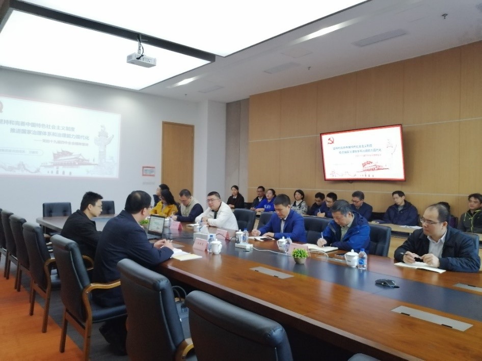 1月7日上午,在集團(tuán)公司統(tǒng)一安排下,勝幫科技召開(kāi)黨的十九屆四中全會(huì)精神宣講會(huì)。集團(tuán)宣講團(tuán)帶隊(duì)領(lǐng)導(dǎo)澄合礦業(yè)公司黨委副書(shū)記、工會(huì)主席衛(wèi)建宏作宣講報(bào)告,集團(tuán)宣講團(tuán)成員澄合礦業(yè)公司黨群工作部副部長(zhǎng)黃磊出席宣講會(huì),勝幫科技領(lǐng)導(dǎo)班子、中層干部及職工代表參加此次宣講學(xué)習(xí)。